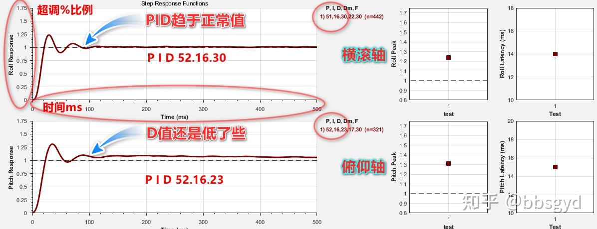 Yaw为航向,一般只要转向时不出现振动,就不要去改变参数,因为多旋翼结构飞机的转向力量太小,参数的大小对转向曲线的改变通常不大,参数高了可能会振动。